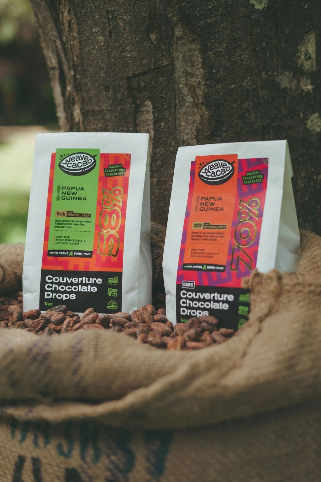 WEAVE Cacao is the weaving together of superb Cacao beans from the inspirational communities in Papua New Guinea, with passionate Chocolate Makers of Aotearoa. We create next level Couverture Chocolate drops.